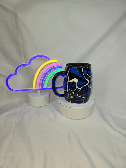 64-Hand painted Blue and Black Zentangle coffee cup 14oz