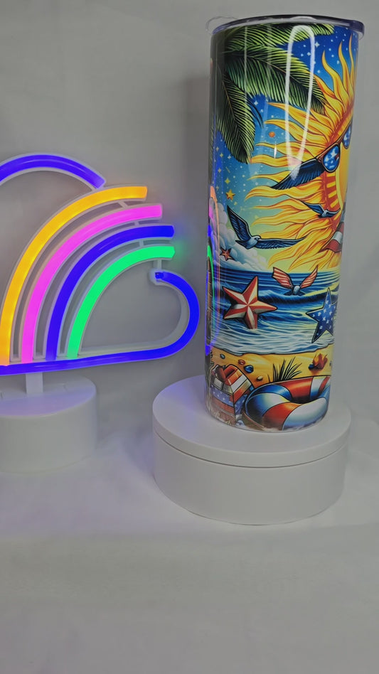 S30- Patriotic Beach 20 oz sublimated tumbler/damaged clearance