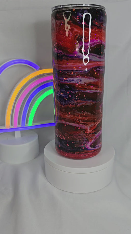 112-Hand painted pink and purple tangle art 20oz tumbler