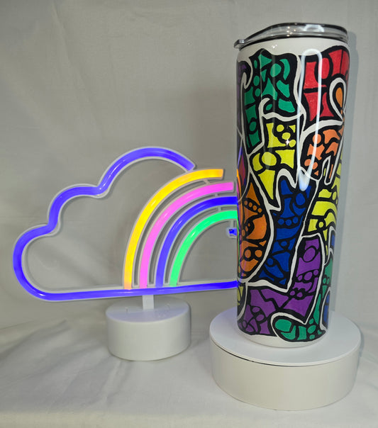 20-Rainbow hand drawn tangle art 20oz skinny duo tumbler