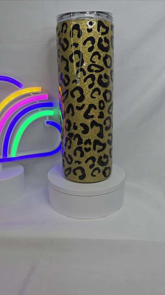 160- 20 oz Leopard print glitter tumbler