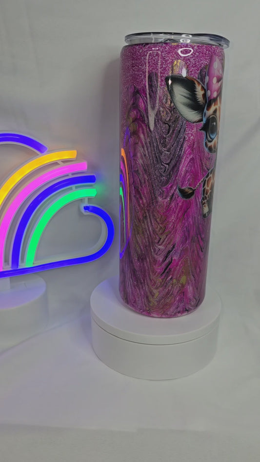 152- 20 oz purple giraffe tumbler