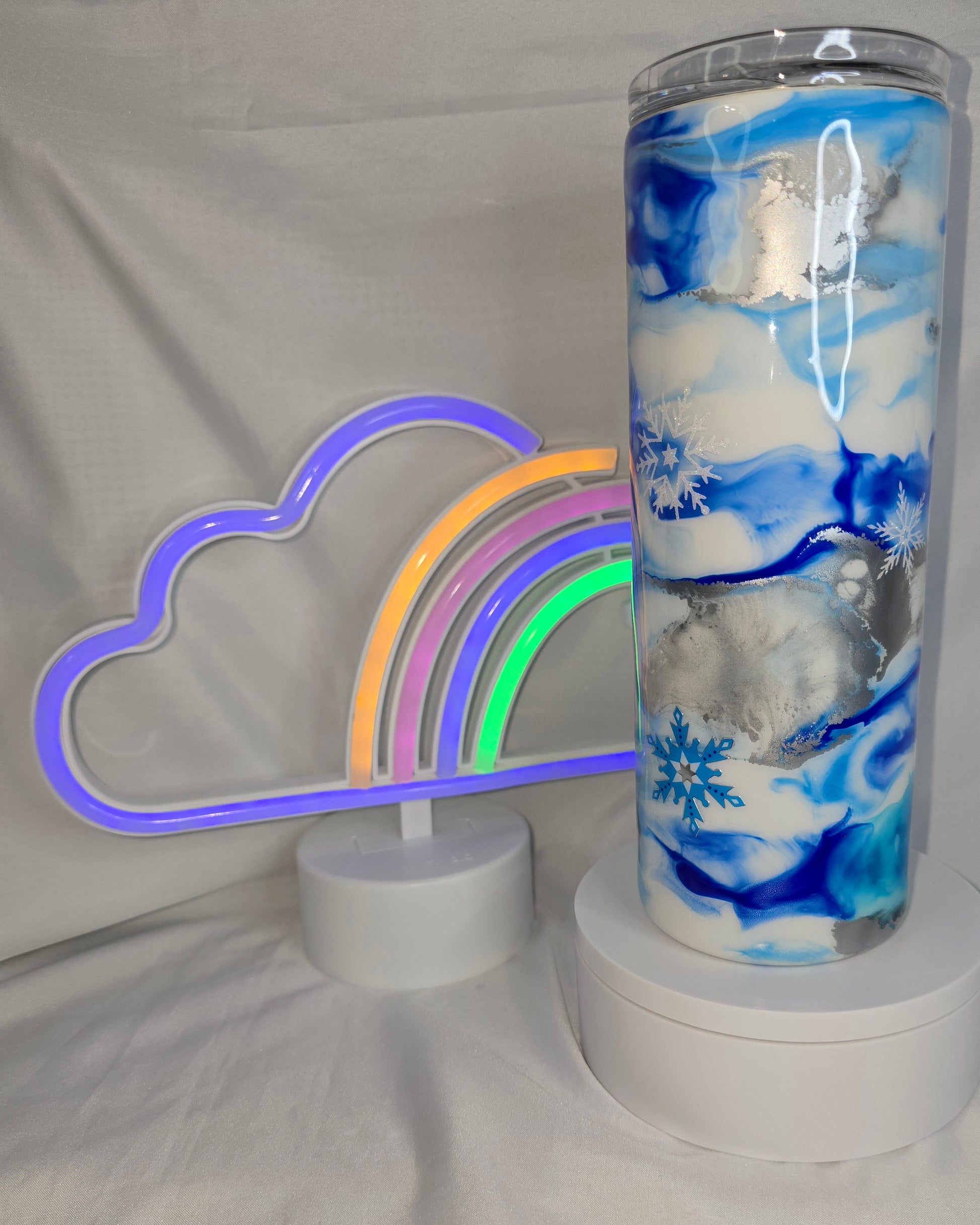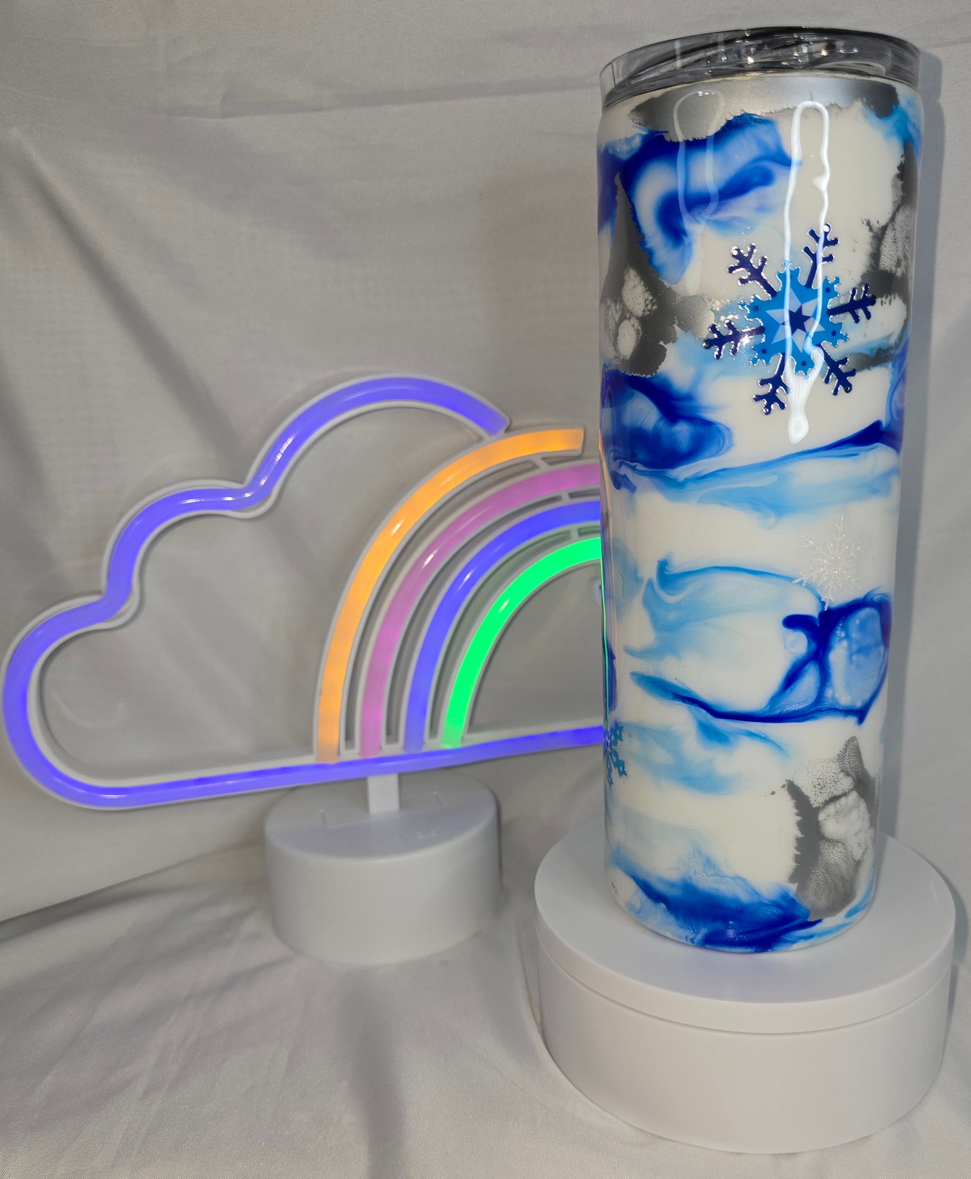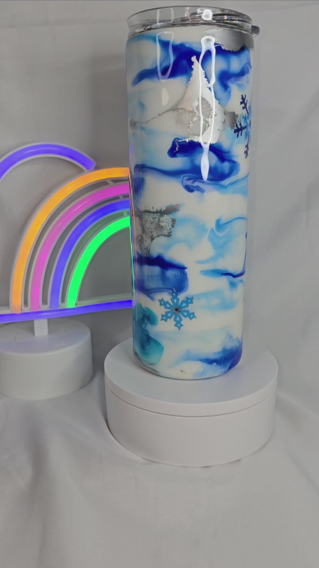 Stay cool and stylish with our 127-Snowflake 20 oz tumbler! This stainless steel tumbler features a unique snowflake epoxy design that will make you stand out from the crowd. Perfect for keeping your drinks at the desired temperature, but make sure to hand wash.