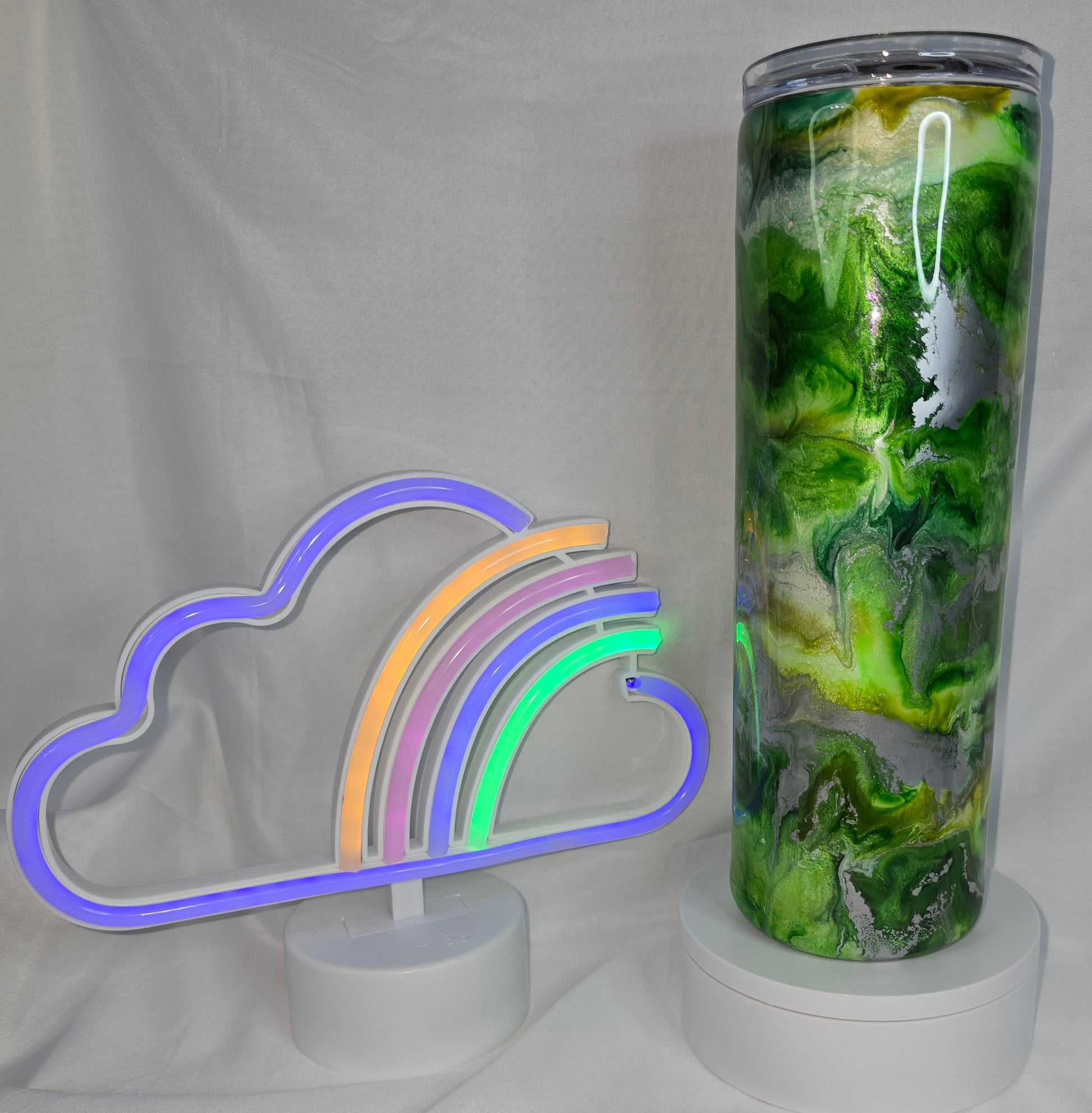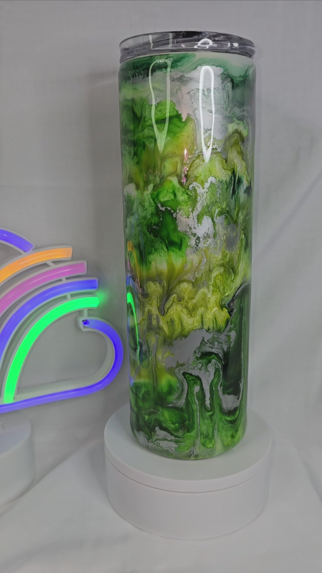 "Stay hydrated in style with our 138-Green Ink Drop 30 oz Tumbler! This stainless epoxy tumbler boasts a sleek green design, perfect for anyone looking for a trendy and eco-friendly way to carry their beverages. Not dishwasher safe."