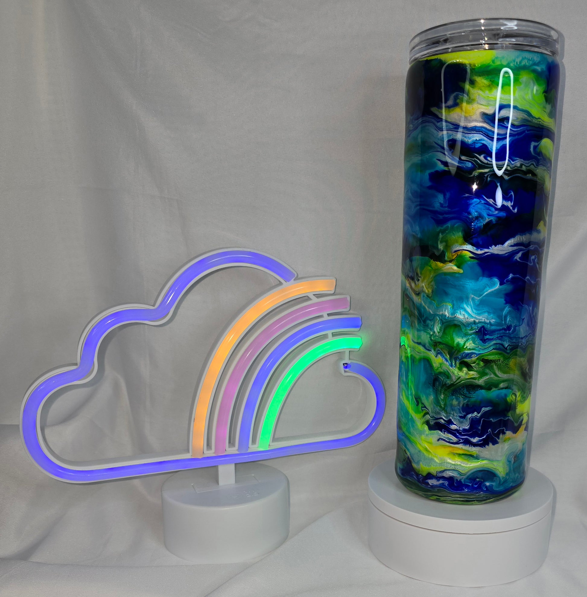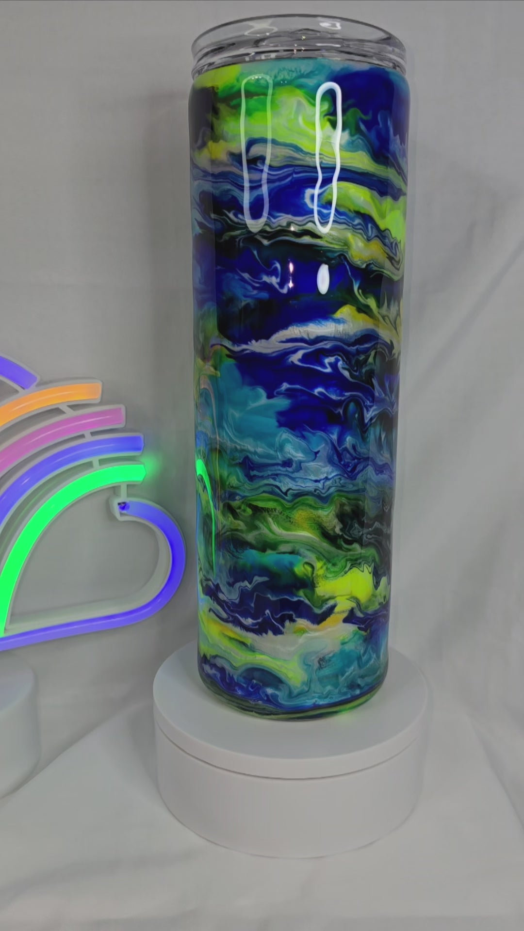 Sip in style with our 139- Blue and green 30 oz epoxy tumbler! This unique tumbler features a vibrant blue and green epoxy design that is sure to make a statement. Not only will you look cool, but the 30 oz size means you can stay hydrated all day long. (Sorry, not compatible with dishwashers!)