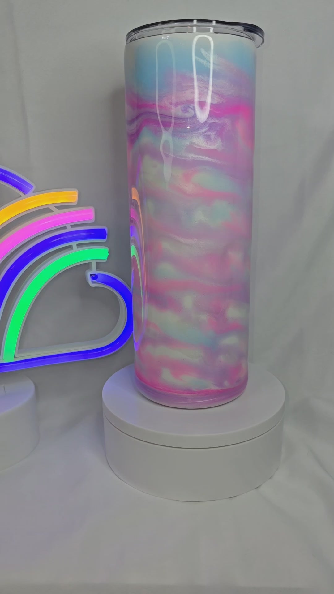 Keep your beverage cool in style with our 148- 20 oz stainless steel tumbler. With a pastel pink and blue design, it's a playful addition to your drinkware collection. Not dishwasher safe (but worth the hand wash for the cool factor!).