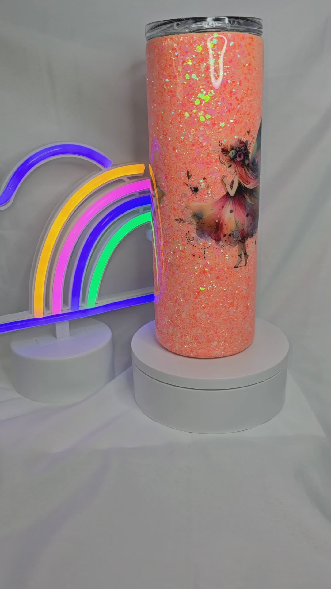 "This 20 oz tumbler is magically adorned with fairies and flowers (but unfortunately not dishwasher safe). Sip in style with this whimsically designed tumbler."