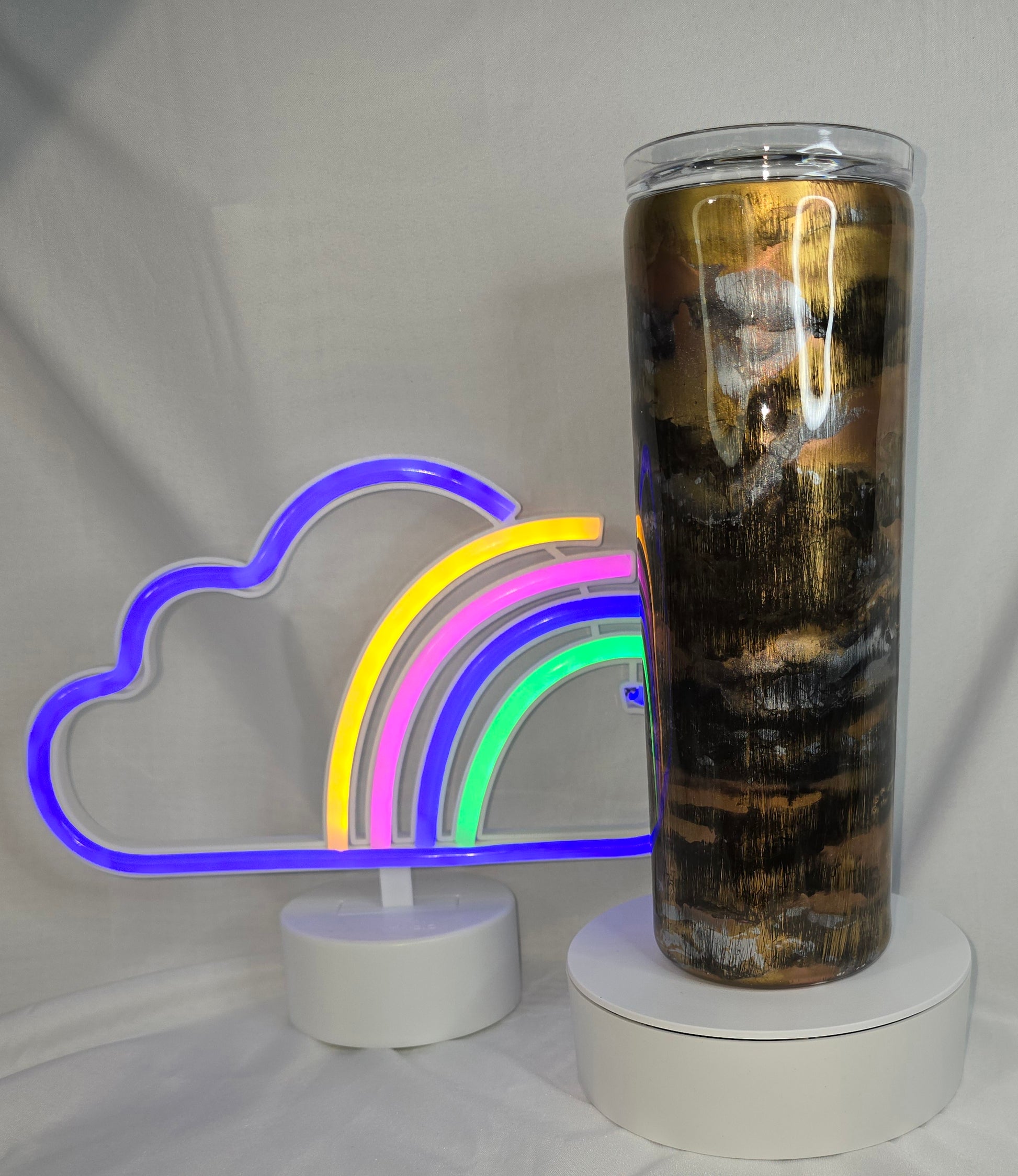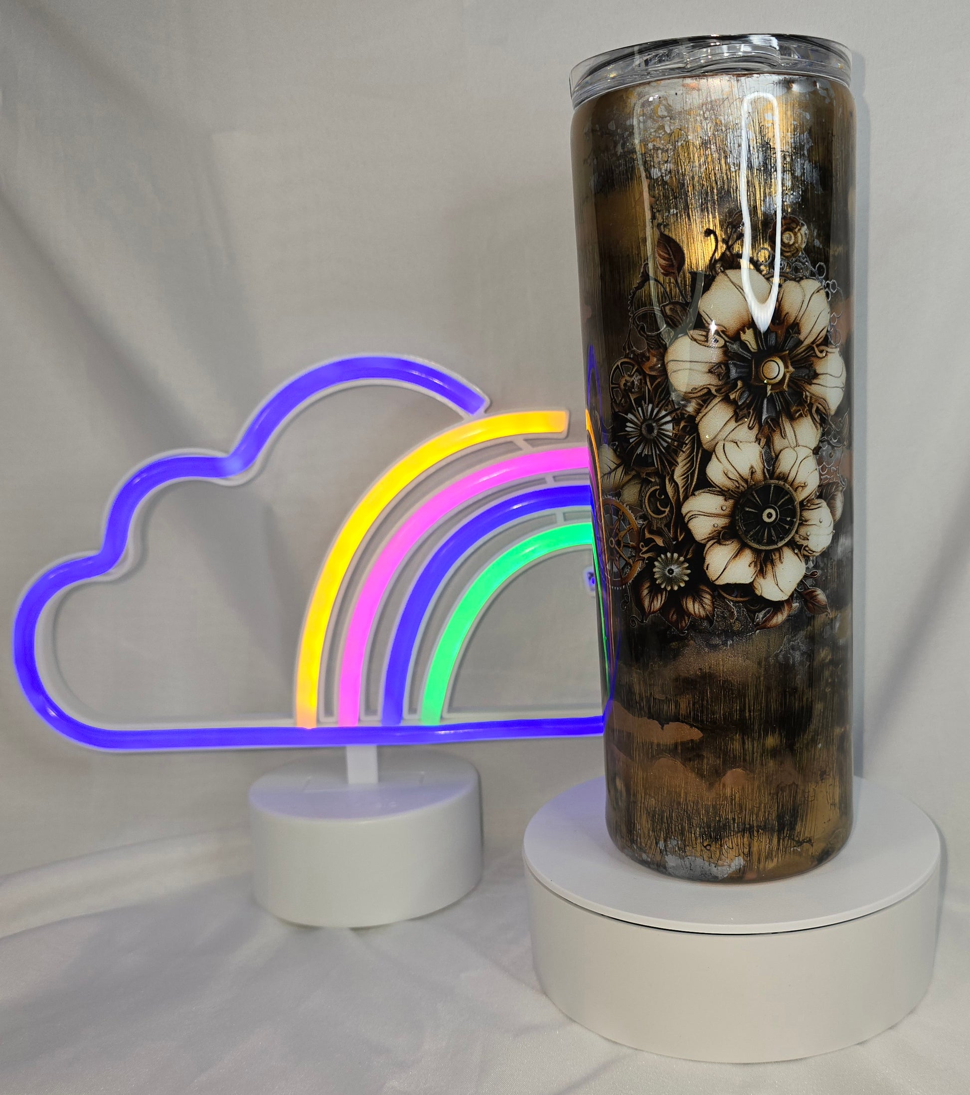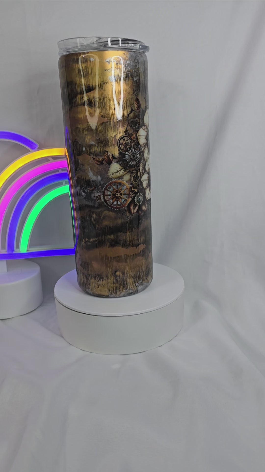 Introducing the 20 oz Grunge Steampunk Floral, the one and only! This unique tumbler is perfect for on-the-go hydration and comes with a reusable straw. (Sorry, but it's not dishwasher safe. We wouldn't want to ruin its special qualities!)
