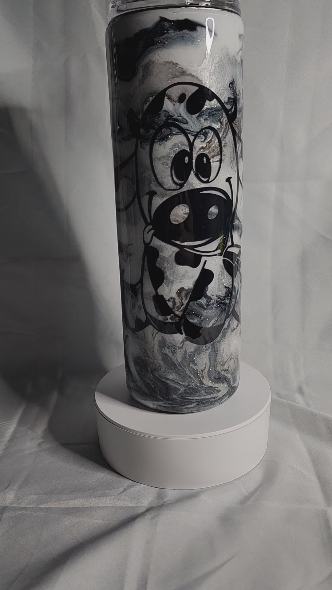 Sip in style with this adorable 30oz Cute Cow Skinny Tumbler! Featuring a cute black and white cow pattern, this epoxy tumbler is sure to make a statement. Get ready to take your beverage game "mooo-velous"!