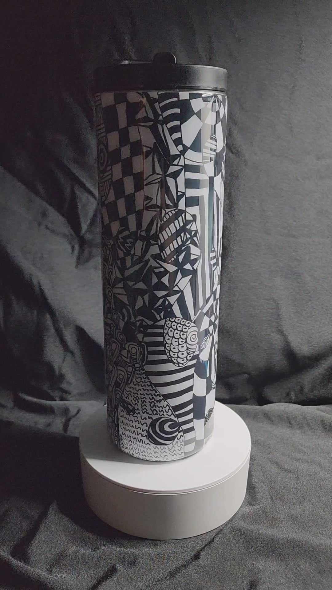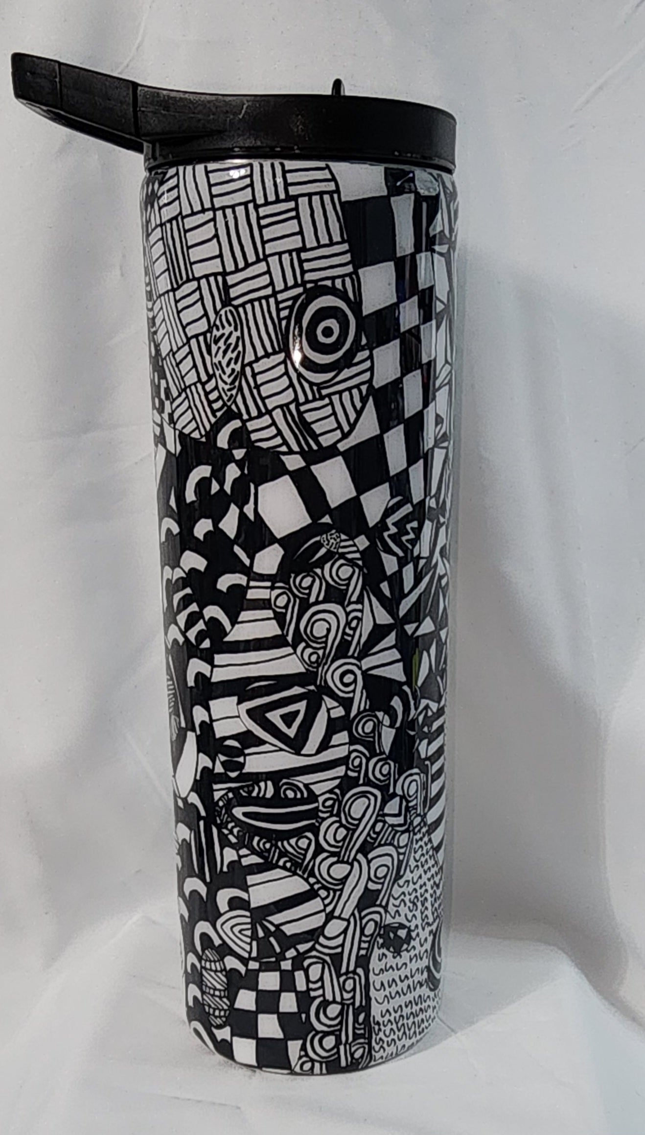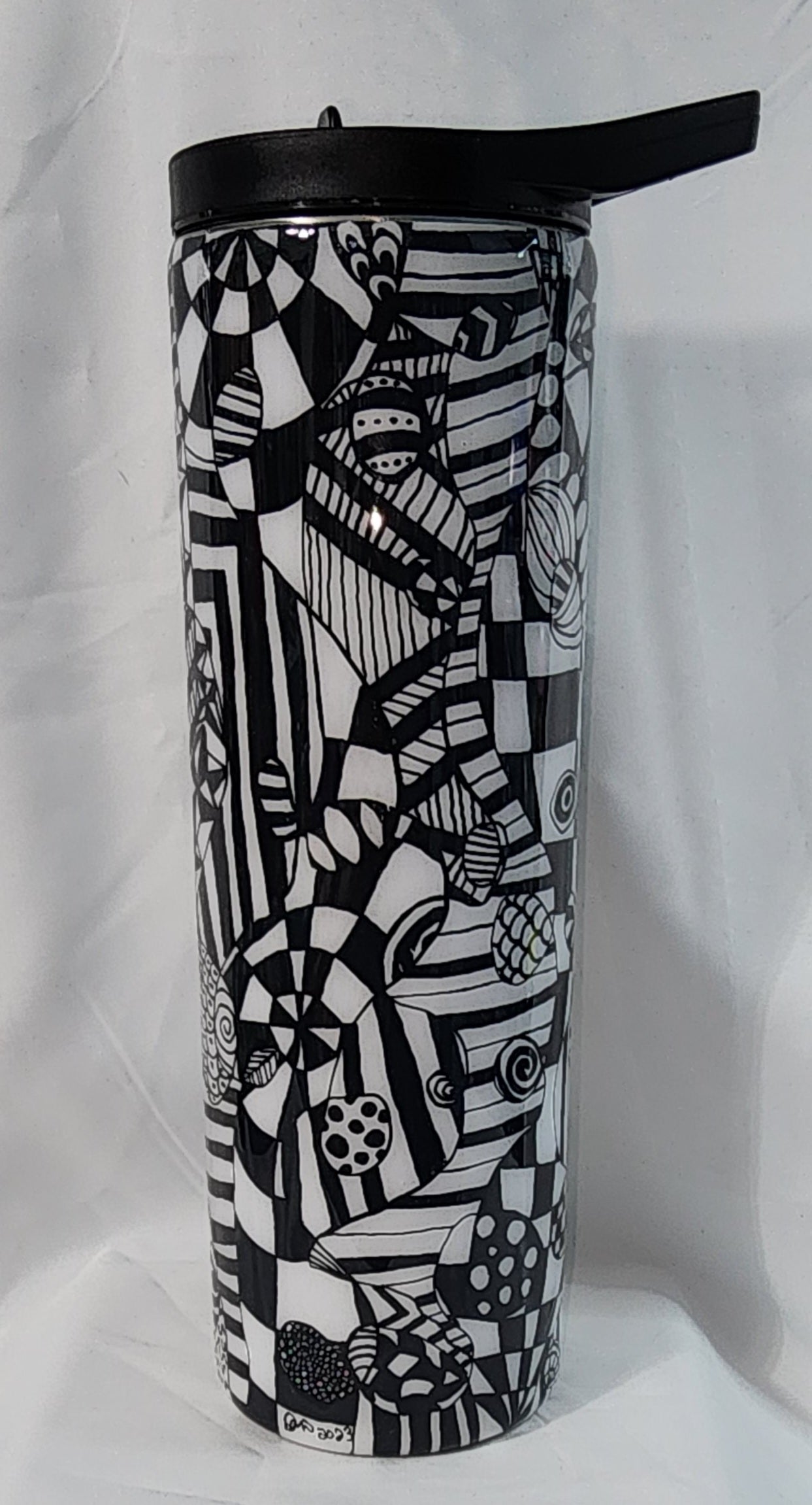 3-Black and White 30oz hand drawn Tangle Art Tumbler