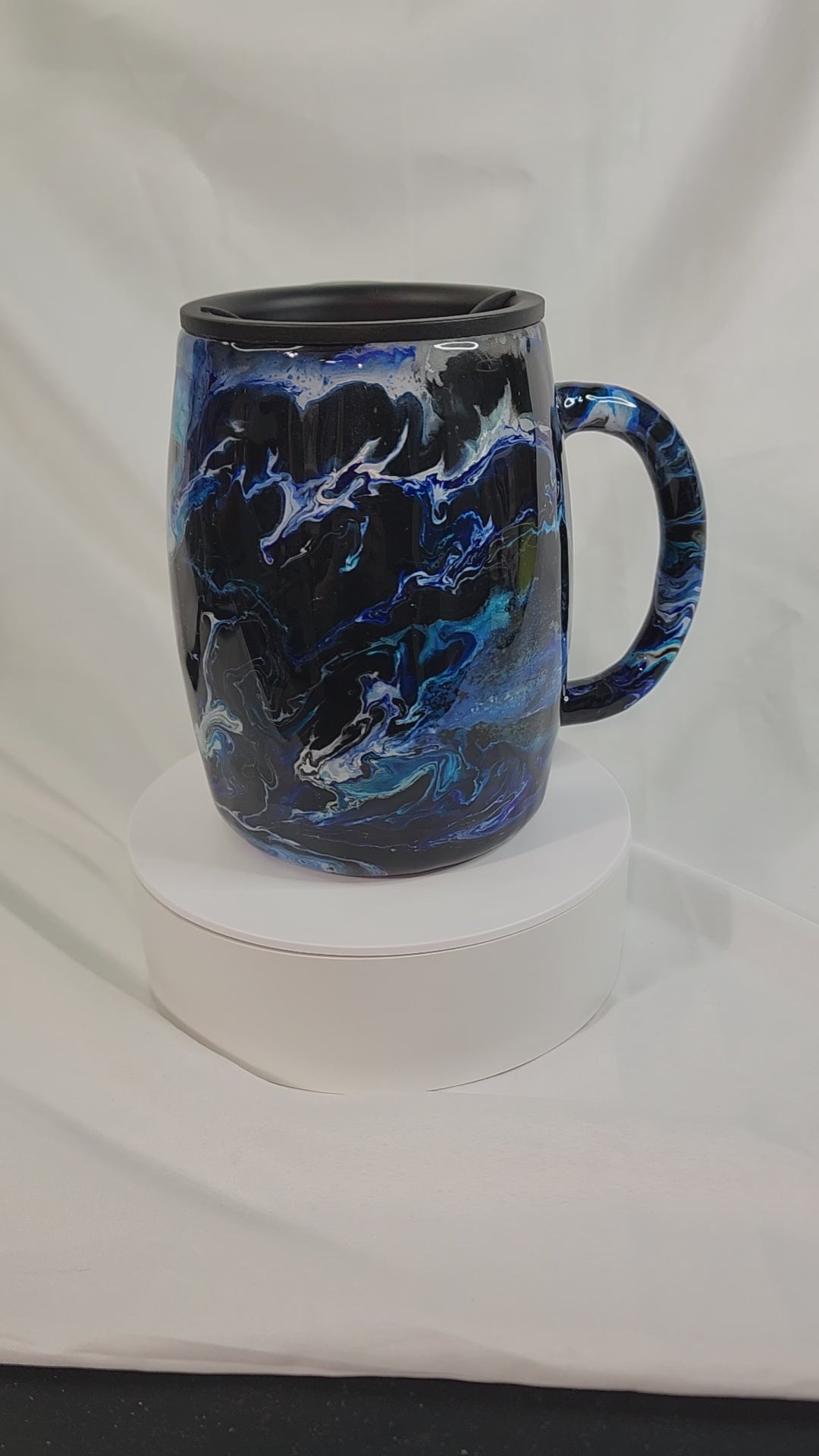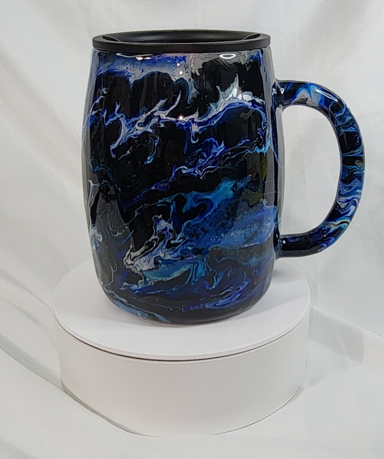 Sip your coffee in style with this unique blue swirled alcohol ink epoxy tumbler. With its vibrant colors and unique patterns, this mug is sure to be a conversation starter! Who knew drinking coffee could be so much fun?!