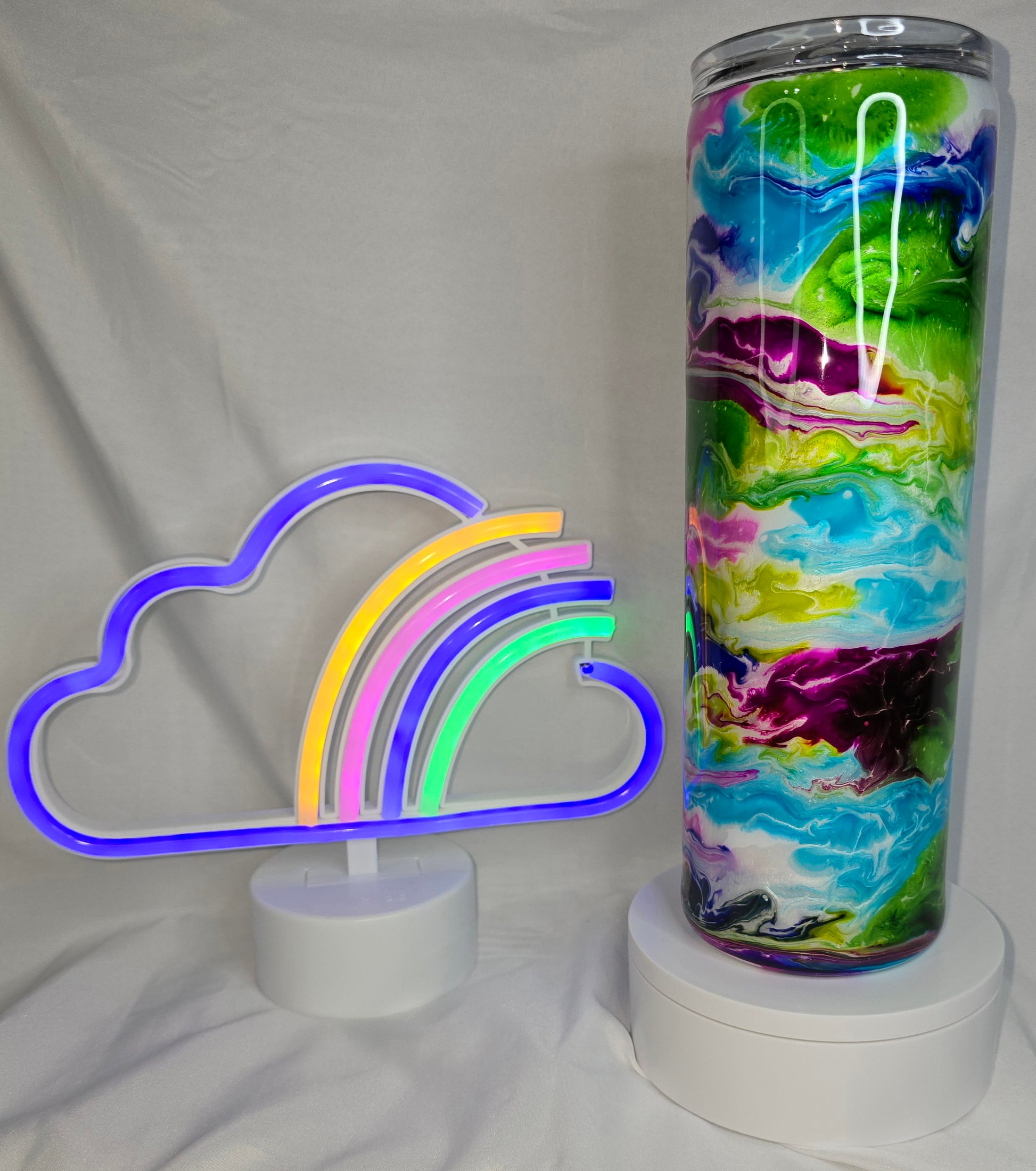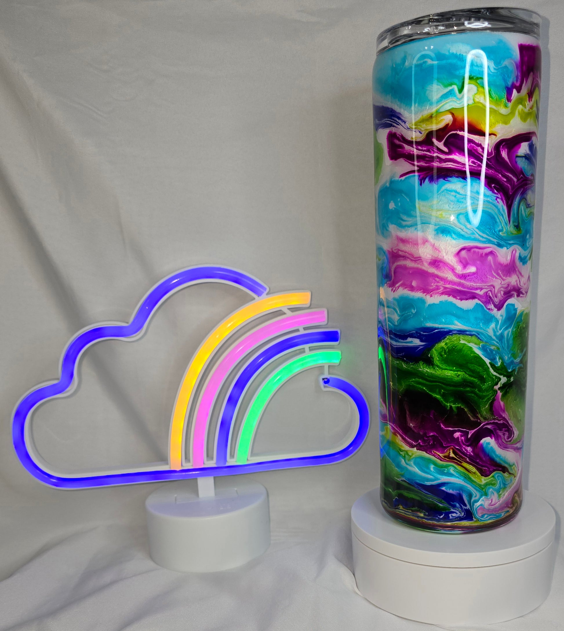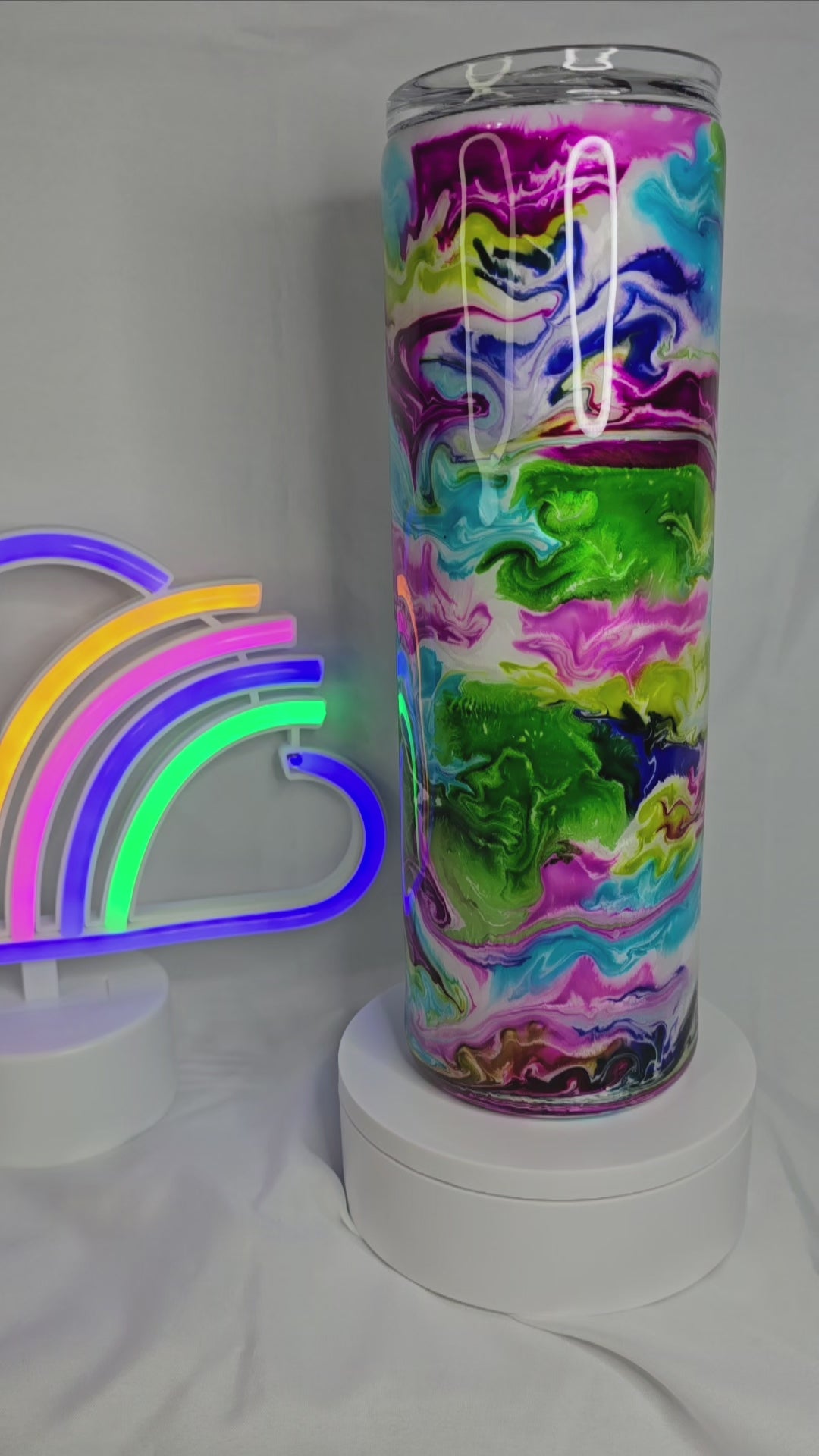 "Make a statement with our Colorful 30 oz tumbler! Made with stainless steel, this tumbler is perfect for keeping your drinks at the perfect temperature on the go. Just remember, it's not dishwasher safe so hand-wash only! (We don't want any colorful surprises!)"