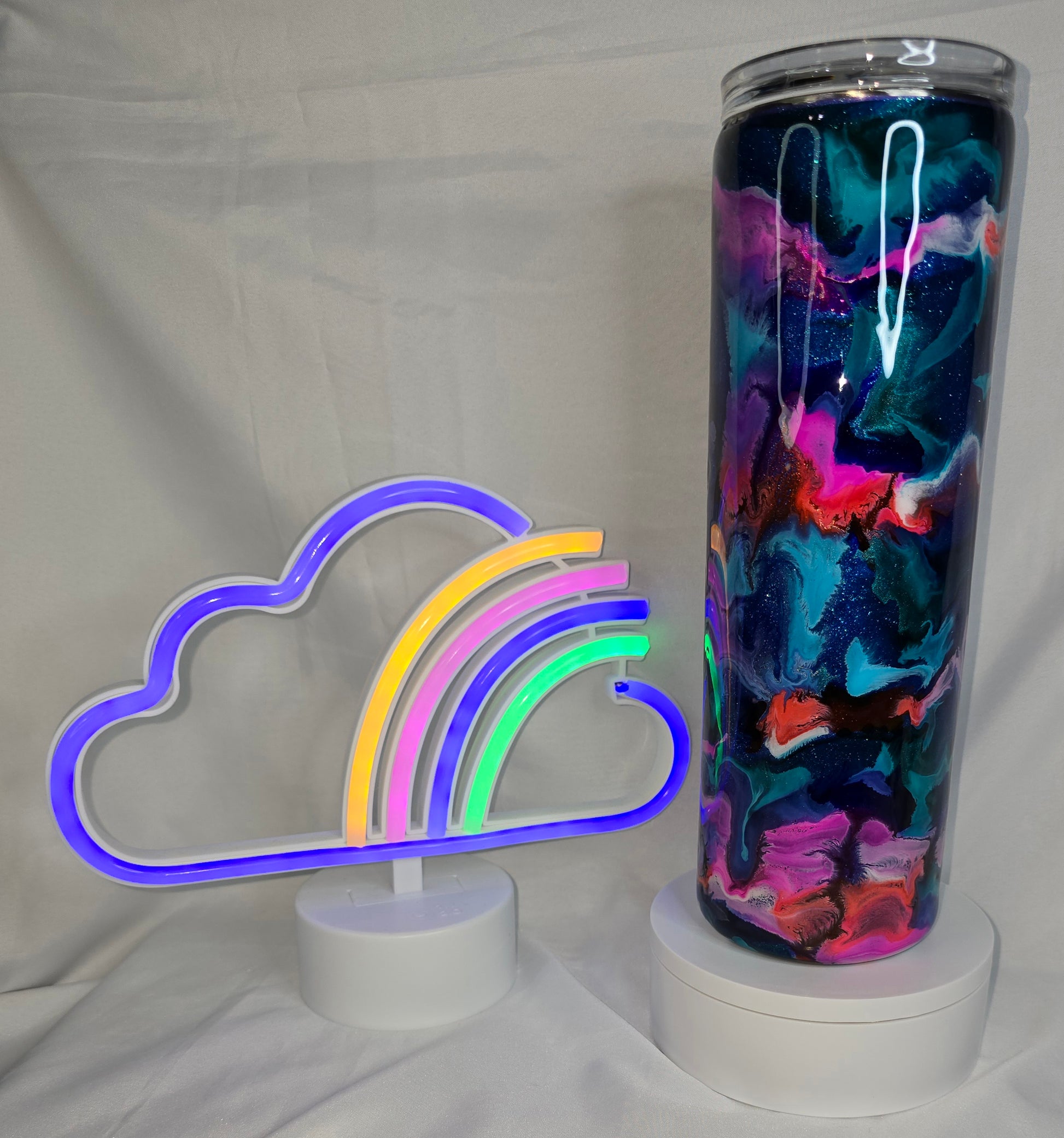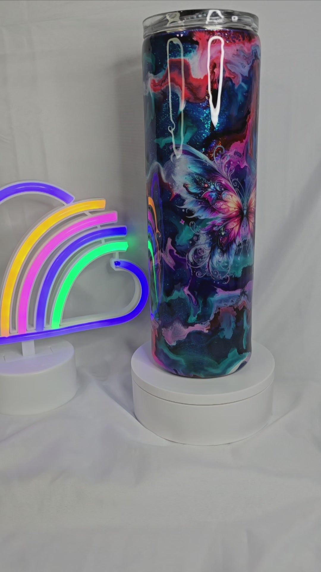 "Unwind with your favorite drink in our Colorful Butterfly tumbler! Made of stainless steel, this 30 oz tumbler adds a touch of whimsy to your everyday routine while keeping your drink at the perfect temperature. Not dishwasher safe."