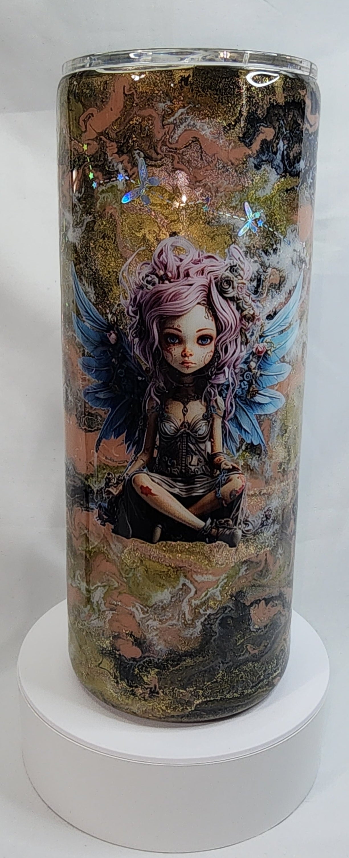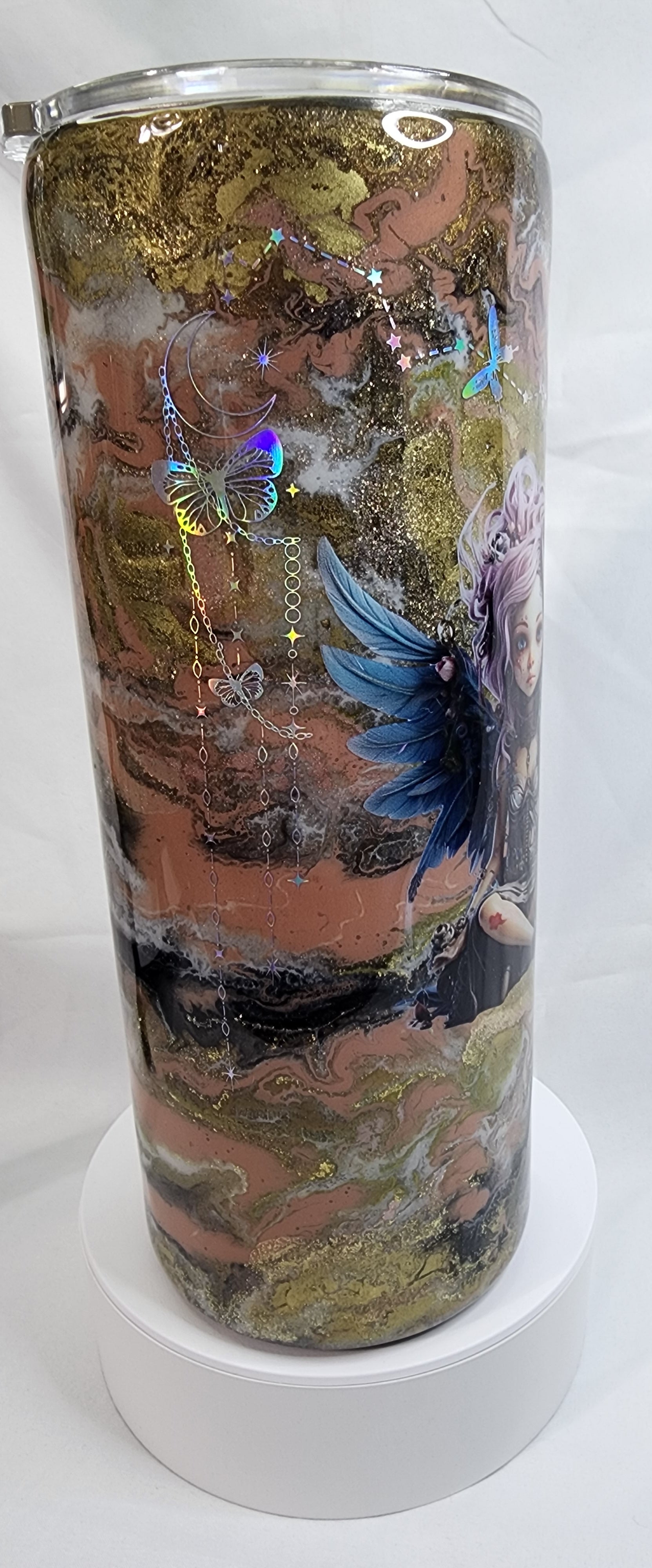 This magical tumbler features a fairy and butterflies in shimmering epoxy, both sure to delight! Perfect for drinks cold and hot, this 30oz stainless steel mug will become your go-to for any occasion!
