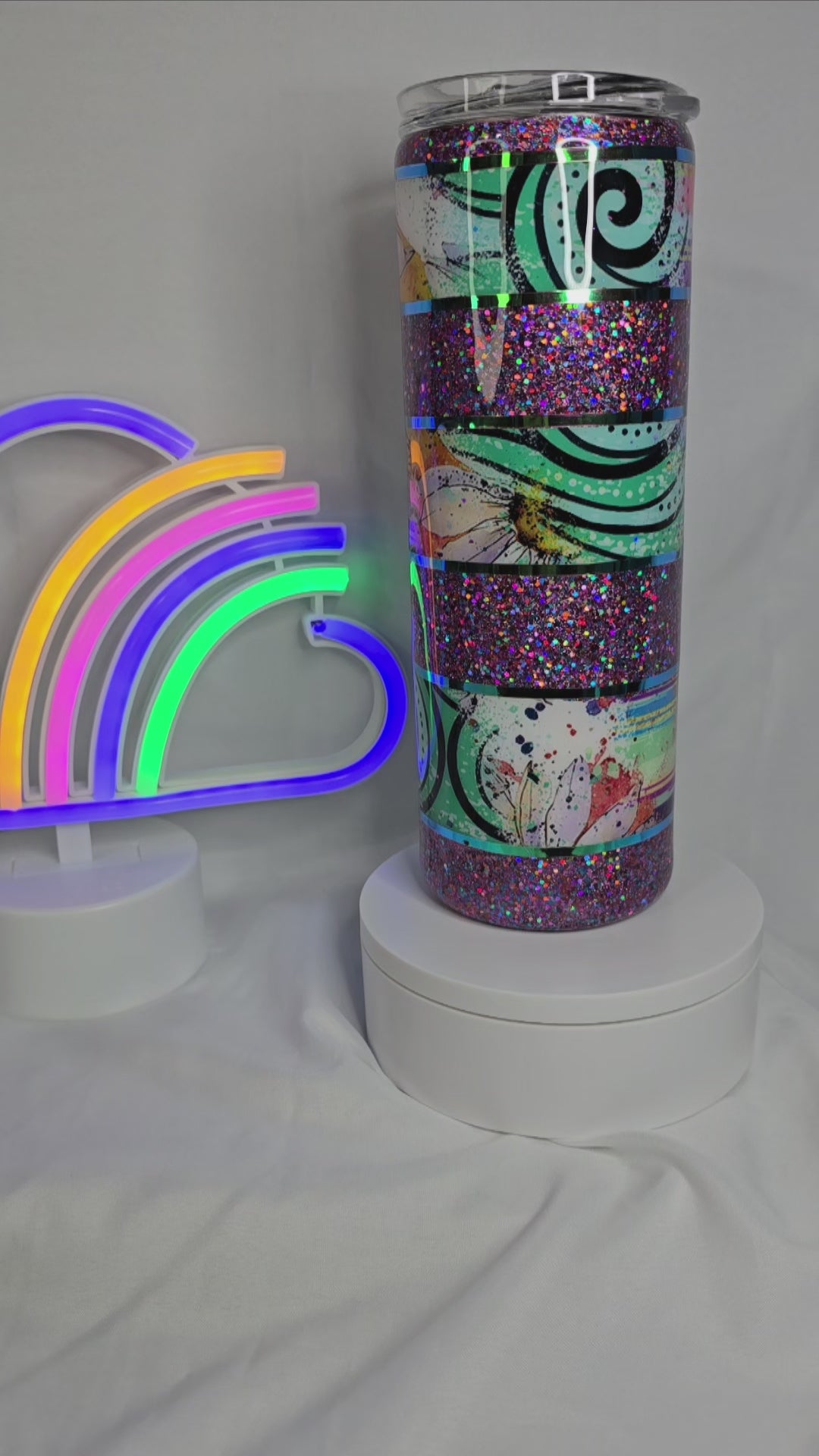 Introducing our 20 oz tumbler with a playful floral pinstripe design. Stay stylish on the go and keep your drinks at the perfect temperature. Not dishwasher safe (bummer, we know), but totally worth it for the hip factor.