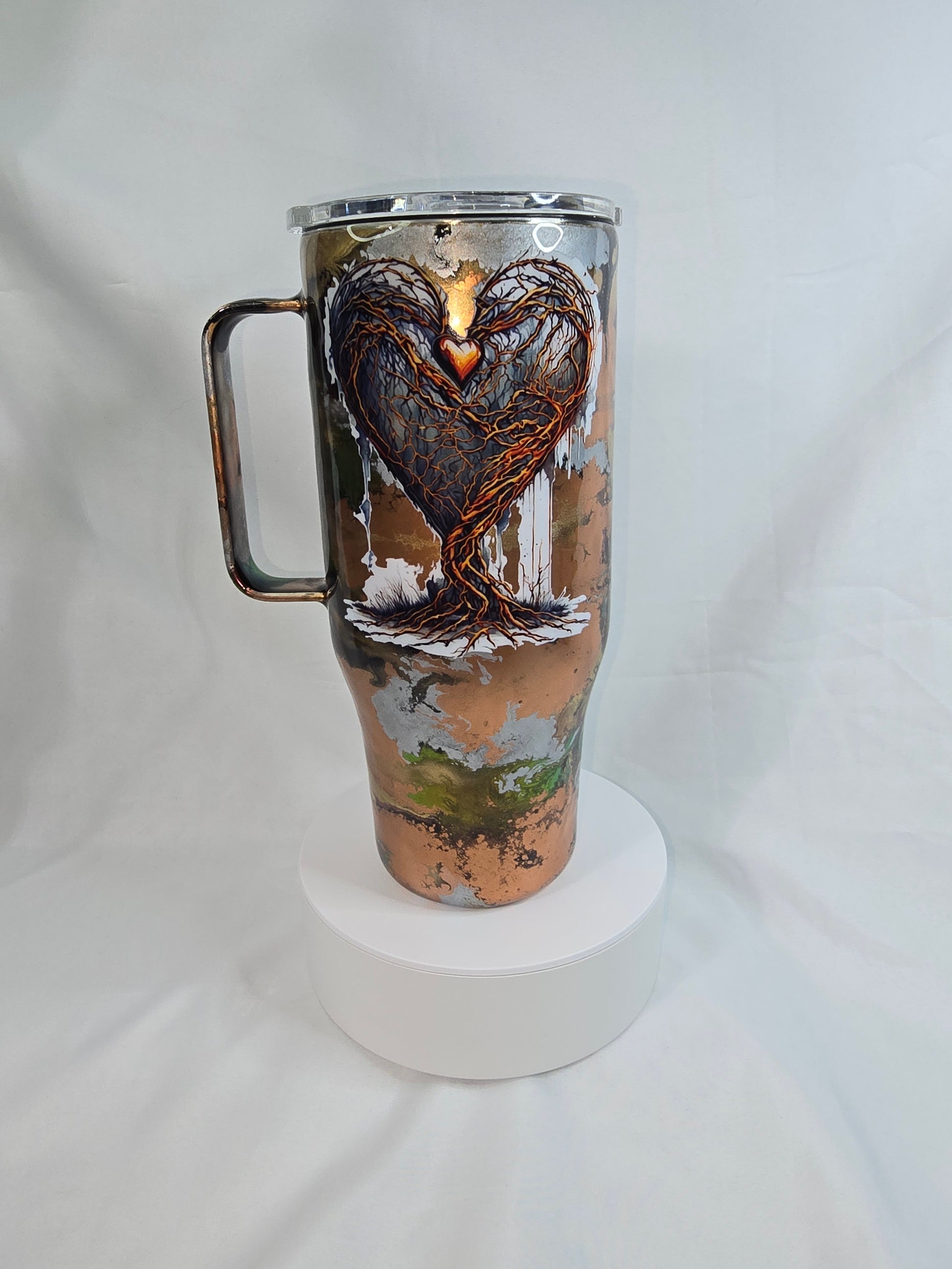 "Fall in love with your drink and the environment with our Heart and Roots Tree of Life tumbler! This 24 oz cup comes with a reusable plastic straw (because we care), and features a beautiful heart-shaped tree of life design. Sip on, eco-friendly folks!"