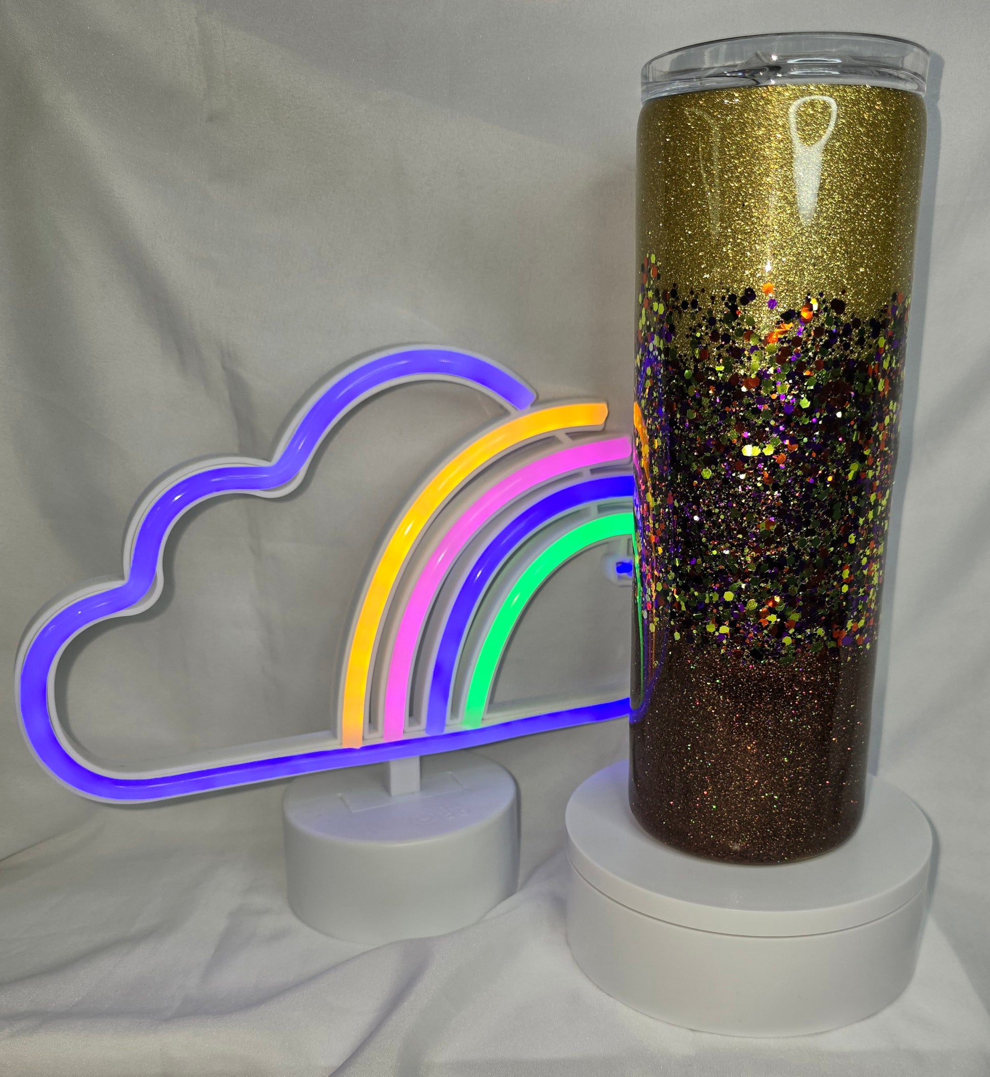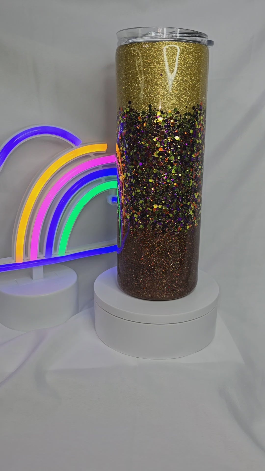 Add a touch of sparkle to your day with our 171- Gradient golds 20 oz epoxy tumbler! This unique tumbler features a gradient glitter design that will catch anyone's eye. Not dishwasher safe, so make sure to hand wash for long-lasting shine. Sip in style and shine on!