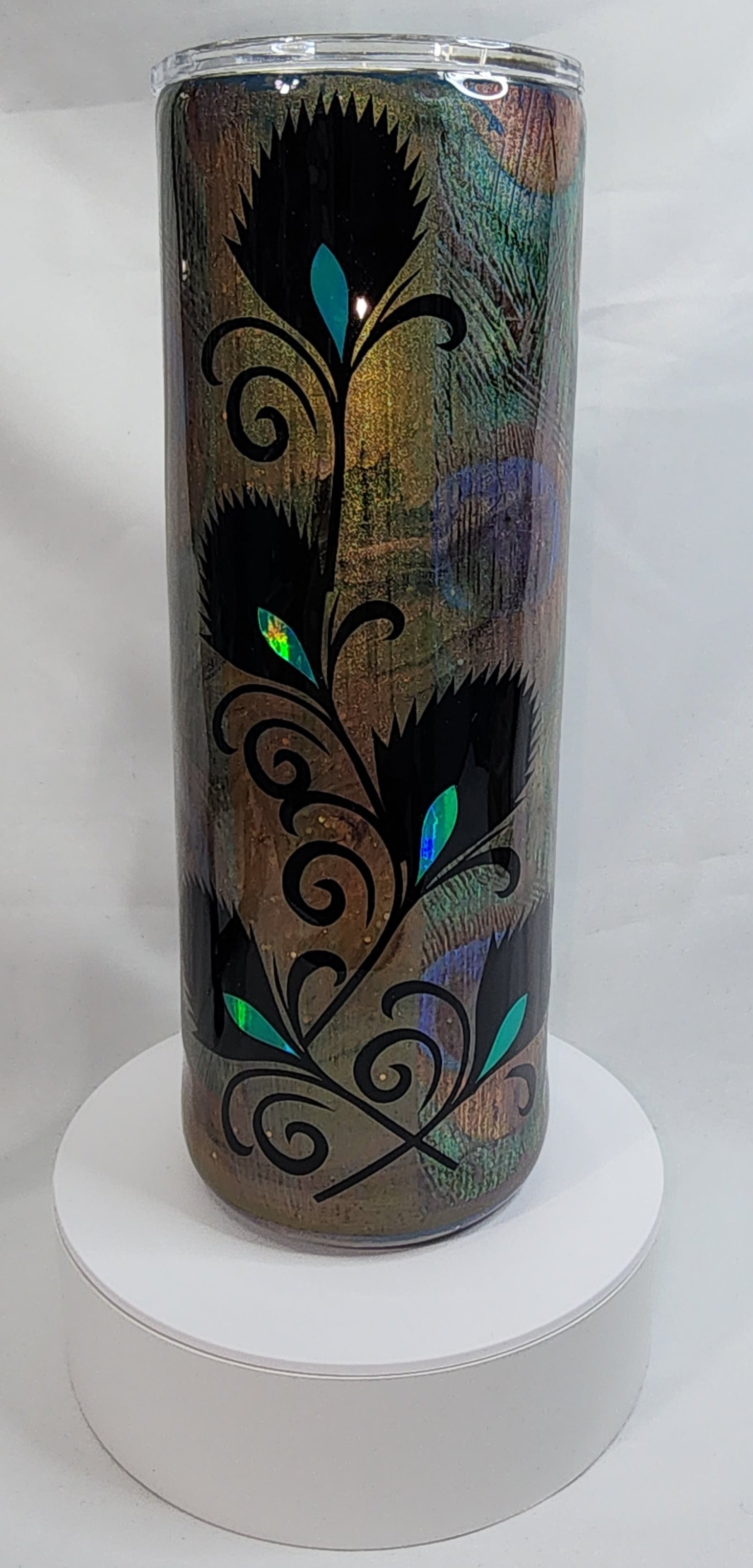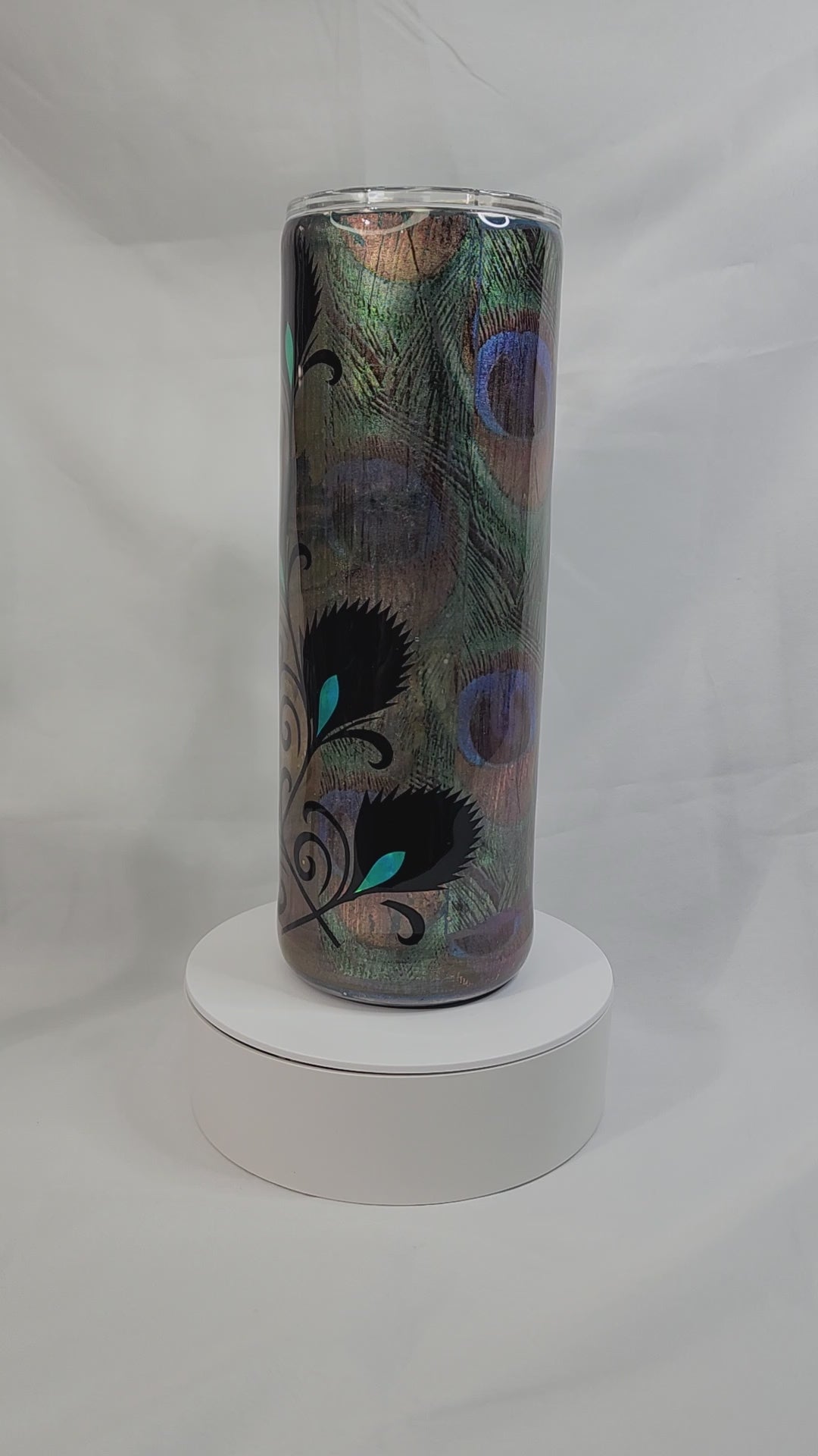 This 20oz skinny tumbler is prettier than a peacock! The peakcock design has been epoxied in for a glossy, modern finish. Show off your style with this unique and eye-catching cup - your friends will be green with envy!