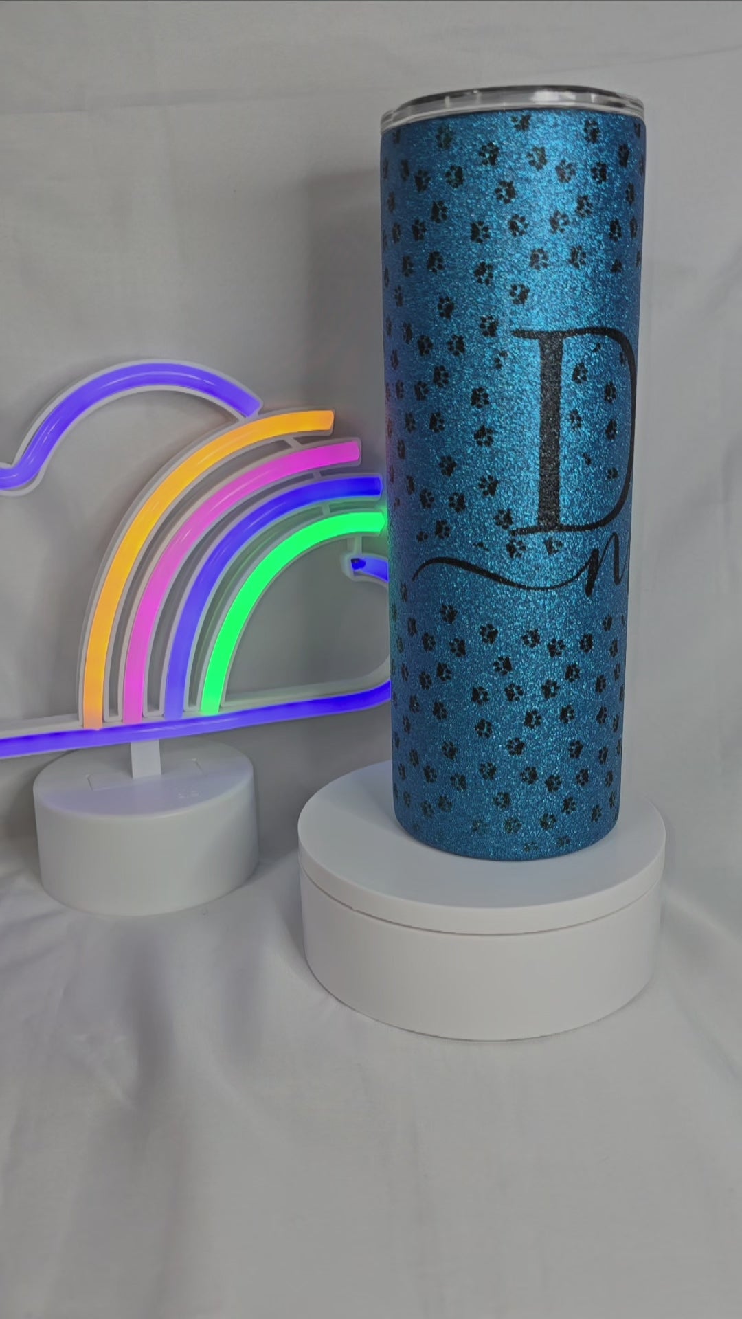 Quench your thirst in style with this adorable S19- Blue 20 oz Dog mom sublimated tumbler. The blue glitter adds a touch of sparkle, while the "Dog mom" design showcases your love for your furry friend. (Note: Not dishwasher safe, but totally worth the hand wash!)