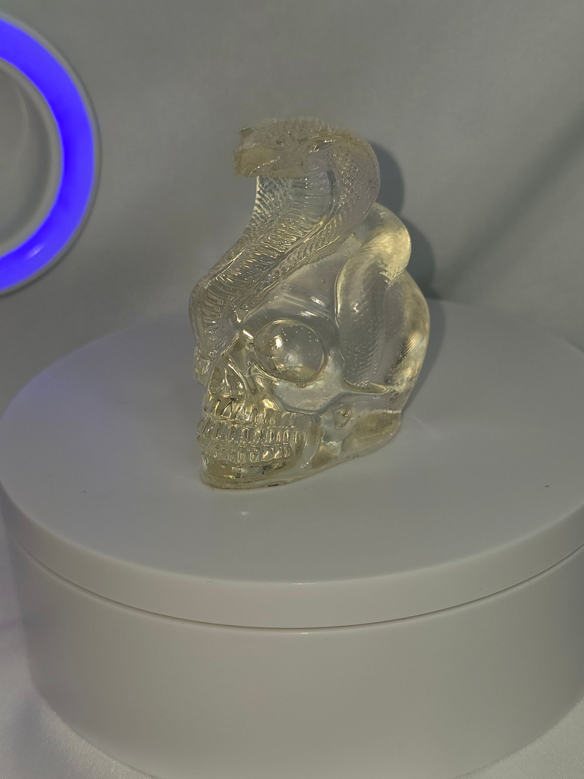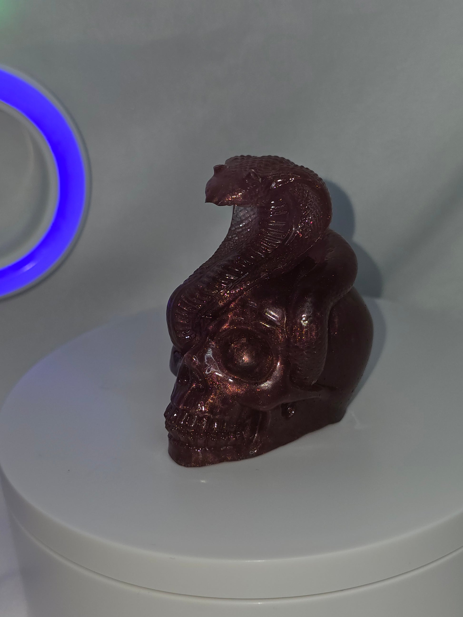 Skull with snake figurine approximately 2.5" tall x 2" deep