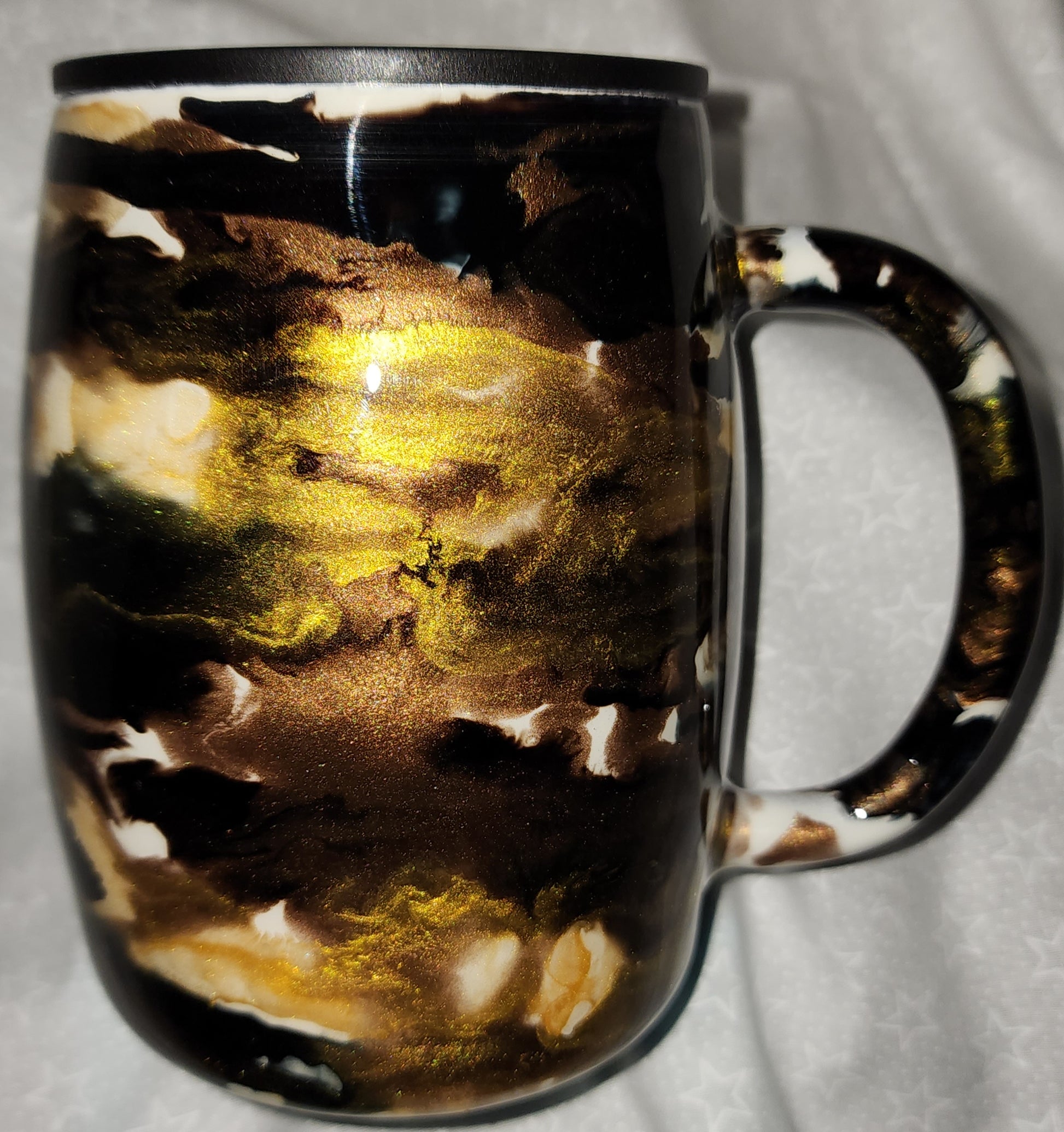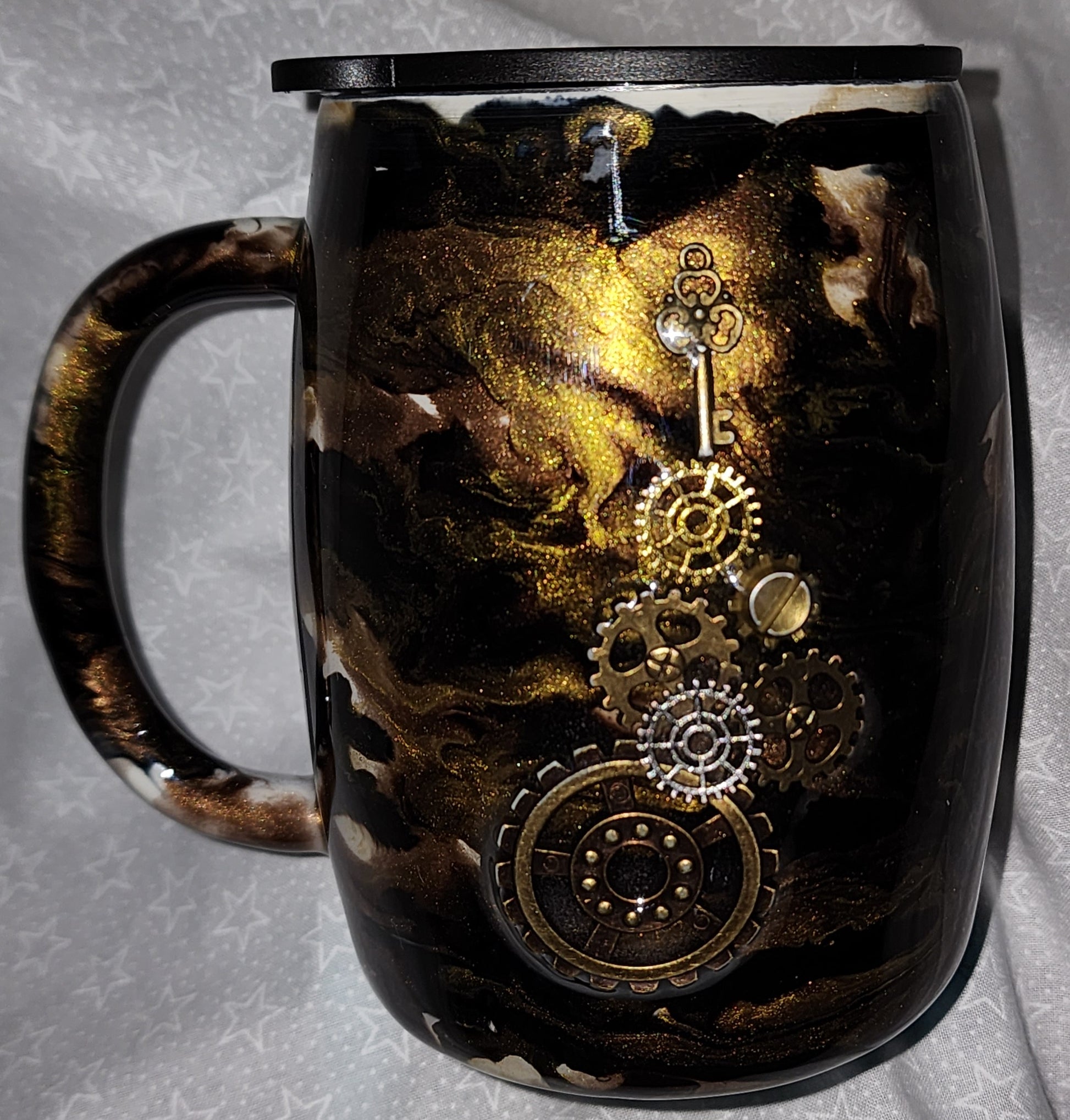 Perk up your morning with this steampunk-inspired 14oz mug! Featuring an epoxy-filled design of gears and cogs, this mug is sure to get your brain in gear for the day ahead! Get your caffeine fix with a unique touch — you deserve it!