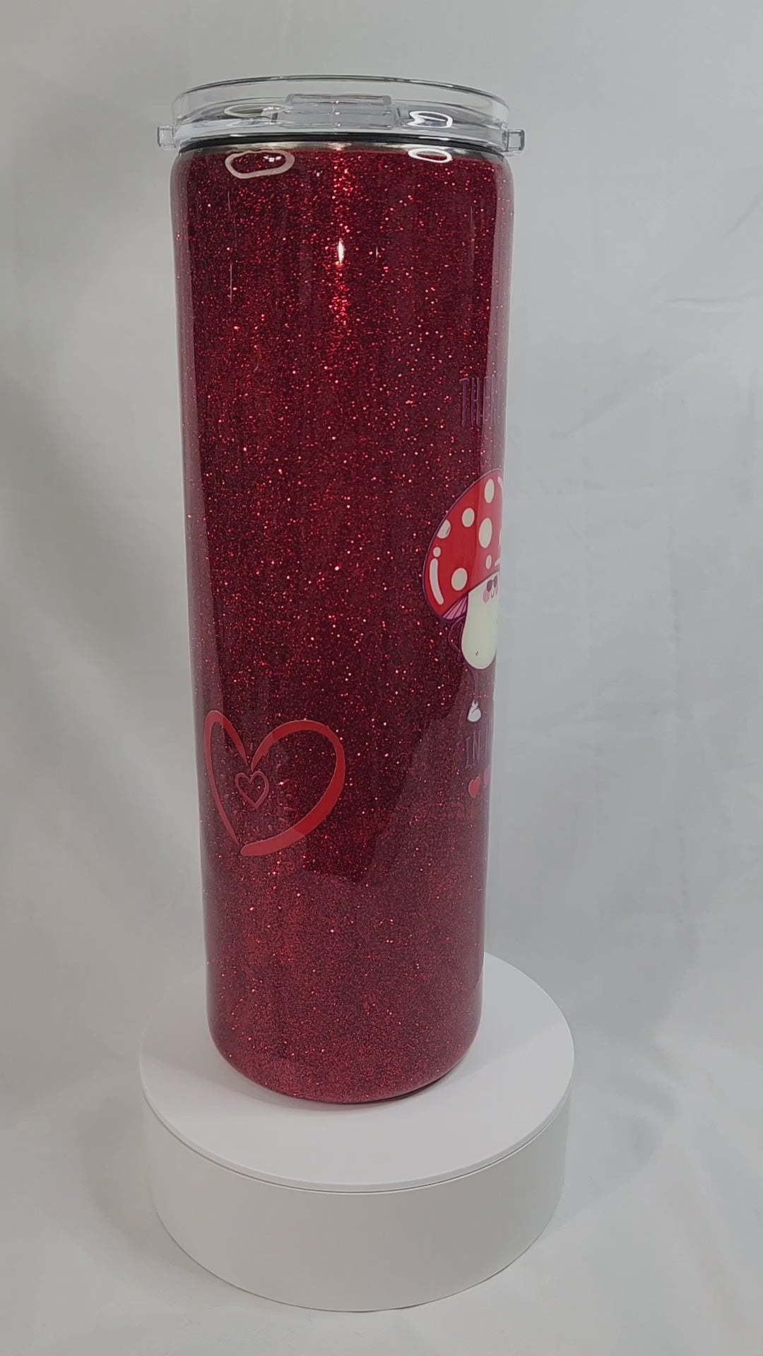 "Spread the love with our 'There's so mushroom in my heart' Valentine's Duo! This 30oz tumbler features an epoxy finish and comes with a reusable straw and topper and a sports lid. Perfect for sipping on the go or sharing a romantic drink with your fungi (I mean, fun guy or gal)!"