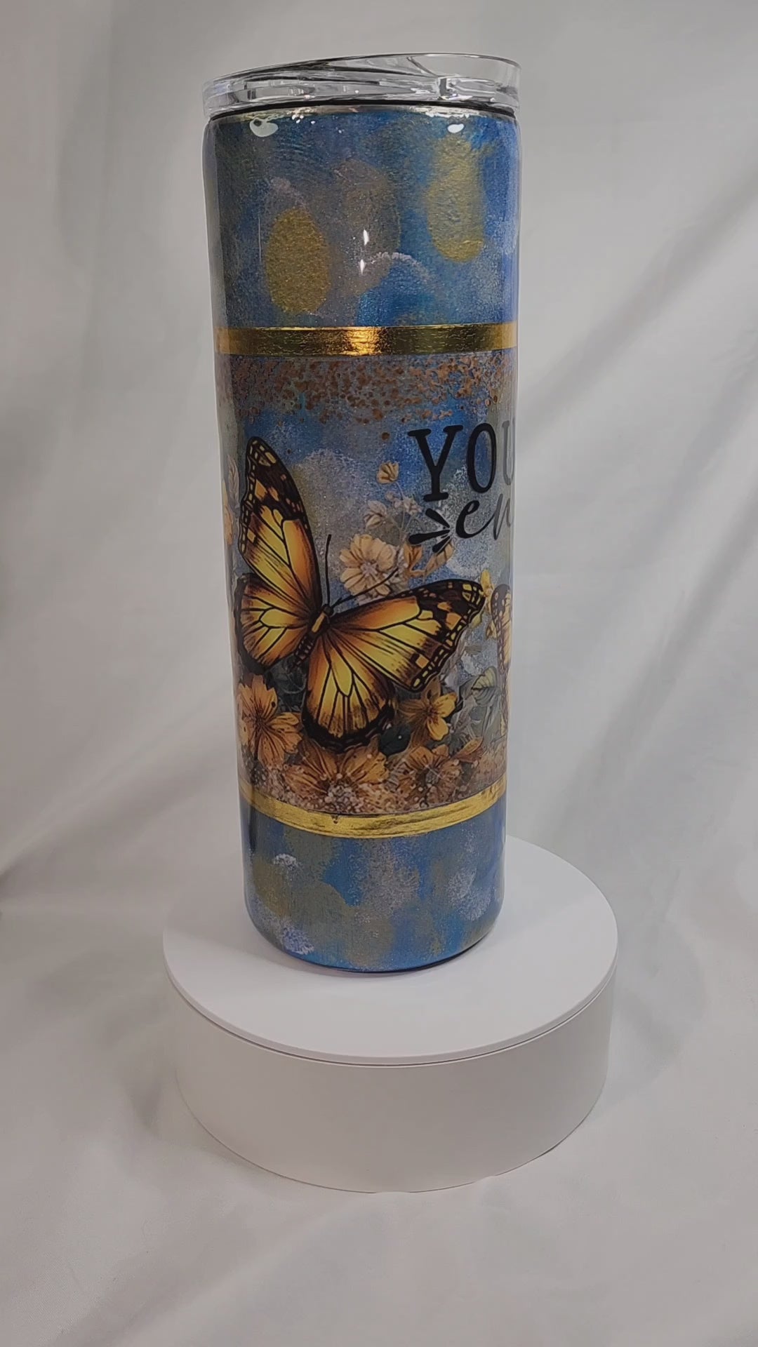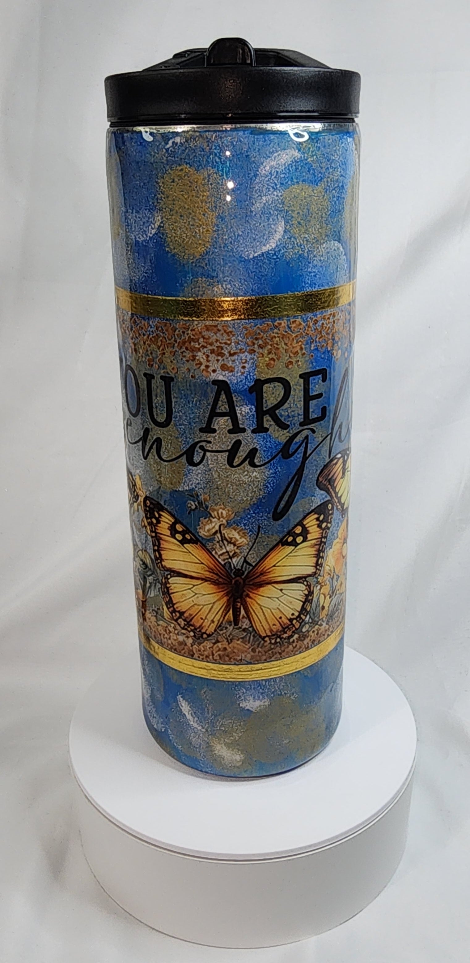 Stay hydrated and be inspired with our You Are Enough butterfly 20oz skinny duo. With a durable epoxy finish, this tumbler comes with both a sport lid for on-the-go sipping and a regular lid with a reusable plastic straw. Empower yourself and reduce single-use plastic waste.